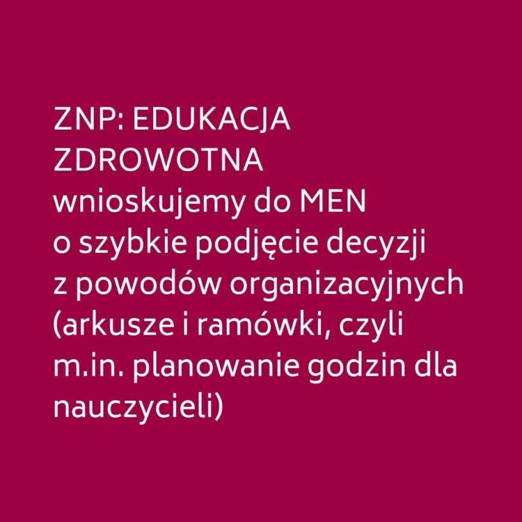 ZNP: Potrzebna jest szybka decyzja w sprawie edukacji zdrowotnej