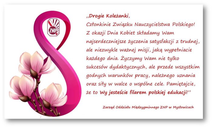 Koleżanki i Koledzy, członkowie Oddziału Międzygminnego ZNP w Mysłowicach – pozdrawiam. W związku z moim odejściem, po 39 latach, z funkcji Prezesa Oddziału Międzygminnego ZNP w Mysłowicach chciałbym podziękować Wam za te wspólne związkowe lata, Dziękuję zarówno tym, którzy członkami ZNP są od kilkudziesięciu lat, jak i tym, którzy wstąpili do ZNP w ostatnich miesiącach czy tygodniach. Wspólnie tworzyliśmy wspólnotę związkową. Nasz oddział był miejscem, w którym było miejsce dla nauczycieli, pracowników administracji i obsługi, jak i emerytów oraz rencistów. – [CZYTAJ WIĘCEJ]
